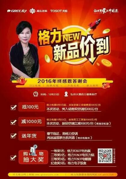 这次活动是董小姐答谢广大消费者多年来对格力电器的支持,让广大消费者分享先进生产力的胜利果实!
