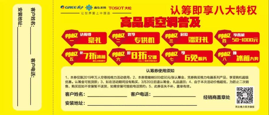 4)、提前认筹,享50-1000元代金券。仅限格力电器指定机型使用,