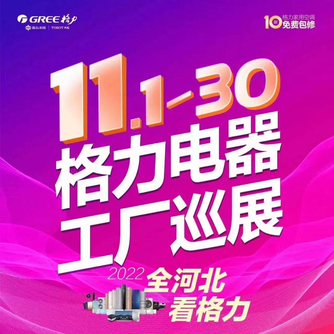 2022年格力电器 工厂巡展,请锁定 11.1-11.30号格力工厂,赢大奖